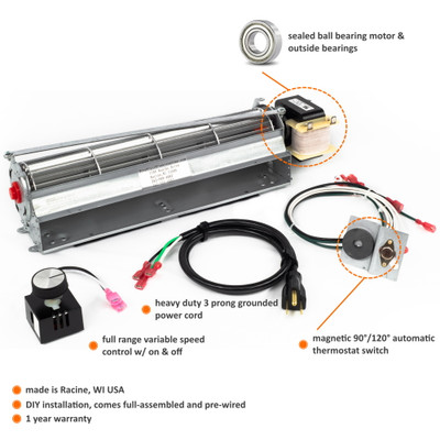Our aftermarket fireplace blower kits are the culmination of years of our own research and development. It is designed in every sense to meet or exceed OEM specifications, which is why we back our claim with a comprehensive 1 year warranty. Don't be fooled by cheaper alternatives. Most of our competitors are simply overseas manufacturers or private label resellers.
