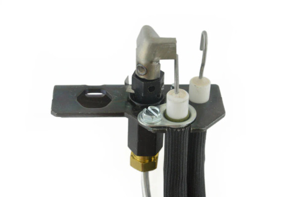 Mendota #05-04-00075 PSE 2-way hooded IPI pilot assembly. Convertible from natural gas (NG) to propane (LP). Pilot ships natural gas and must be converted to LP. Includes spark electrode and flame sensor. Pilot tube and wire leads 36" long.