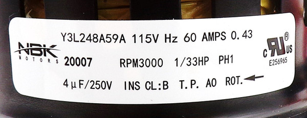 • Motor Specifications: 115V, 60Hz, 3000 RPM, 0.43A, 1/33 HP, PH1: Delivers powerful, high-speed draft performance for effective furnace venting.