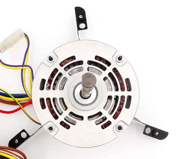 Key specifications (based on common equivalents for these cross-references) include 1/3 HP, 115V single-phase 60Hz, typically 1075 RPM (standard constant torque speed for furnace blowers), around 6–8 amps (depending on load/speed tap), multi-speed capability (often 4-speed with tapped leads), reversible rotation (as wired), sleeve bearings, standard 48-frame/5.6" diameter body, PSC type (requires capacitor, typically 7.5–10 MFD/370V), torsion/flex mount in many equivalents, and thermal protection—ideal for mid-efficiency furnaces and air handlers, especially in homes with Goodman, Carrier, or similar systems during cold Wisconsin winters.