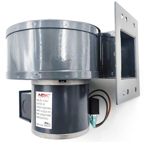 The NBK-20709 Blower Motor (115V, 50/60Hz) is a compact, high-reliability shaded-pole centrifugal blower motor designed as a direct aftermarket replacement for air movement in HVAC ventilation, draft inducers, small centrifugal blowers, exhaust fans, wood/pellet stove convection or combustion blowers, outdoor boilers, or compatible OEM applications. This motor drives the centrifugal wheel to deliver consistent, focused airflow (131 CFM), supporting combustion air supply, convection heat distribution, exhaust venting, or general circulation—ensuring efficient burning, even heat output, and reliable performance in residential heating systems like wood stoves, pellet stoves, or light commercial/outdoor boiler setups.